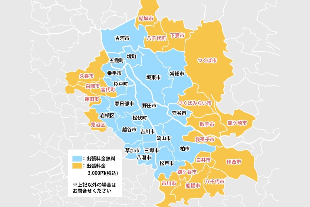 基本的には千葉県、埼玉県、茨城県を中心に、東京都、栃木県、群馬県の一部にも対応しております。